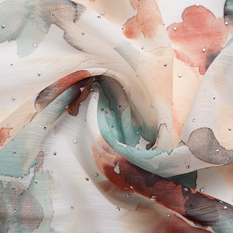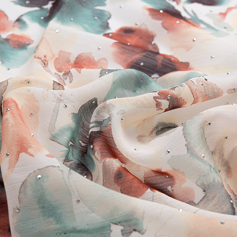 | 3-12 | 100 % polyester | Fleur saisie à la main 75D * 95D | 180GSM | 57/58 | Teinture, impression, broderie, marquage à chaud, froissage, flocage, dévorage, décalcomanies en crêpe, moulage goutte à goutte, etc. | Produits d'imitation d'acide acétique, mode masculine et féminine, vêtements d'extérieur, robes, jupes et pantalons, chemises, cheongsams, pyjamas, robes de mariée, foulards, rideaux, textiles de maison, etc. |