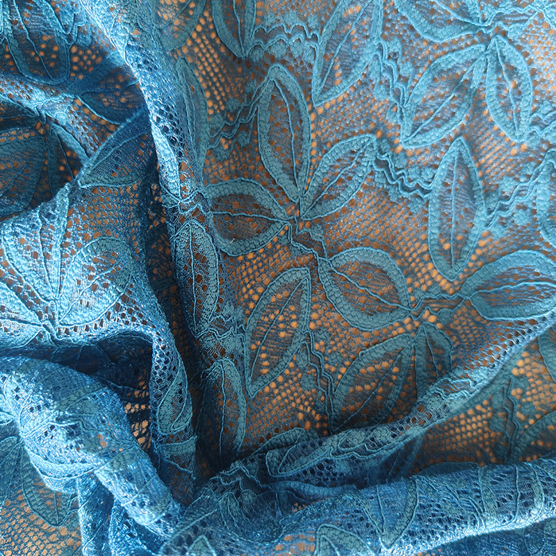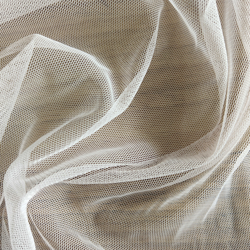 | 13-20 | 95 % nylon, 5 % élasthanne | 130-140GSM | 57/58 | Teinture, impression, paillettes, crêpe, etc. | Robes de mariée, robes de soirée, lingerie féminine, objets artisanaux, décorations de jouets, costumes de théâtre, décorations en dentelle, rideaux, nappes, sous-verres, linge de lit, etc. |