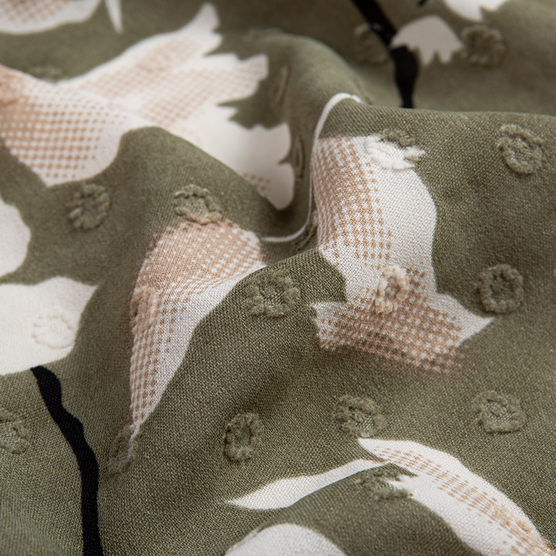 | 2-13 | 100 % polyester | Jacquard 180D*130D | 145GSM | 57/58 | Teinture, impression, broderie, froissage, marquage à chaud, moulage goutte à goutte, etc. | Mode masculine et féminine, robes, jupes-culottes, chemises, textiles de maison, etc. |